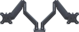 Opremljen je s sistemom skritega vodenja kablov, ki ohranja vaš delovni prostor čist in urejen. Montaža je prilagodljiva in enostavna, saj omogoča pritrditev na rob mize ali v odprtino v delovni plošči. Podpira standarda VESA 75 x 75 mm in 100 x 100 mm.