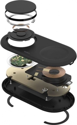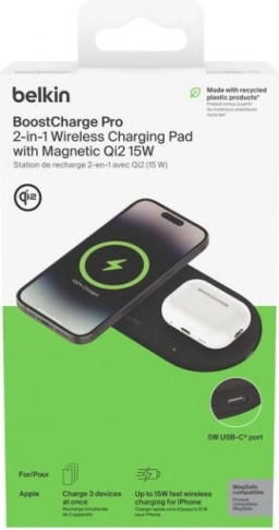 Uživajte v udobnem in varnem polnjenju brez kablov. Brezžična podloga Belkin BoostCharge Pro Qi2 vašemu iPhonu zagotovi moč 15 W, slušalkam AirPods 5 W, z 5‑W USB‑C izhodom pa napolni tudi dodatno napravo. Magnetna tehnologija Qi2 poskrbi za hitro in natančno poravnavo za zanesljivo polnjenje.
