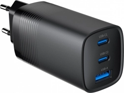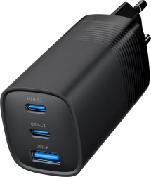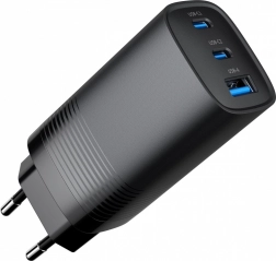 Polnilec s tremi priključki zagotavlja visoko moč 65 W, kar je dovolj za hitro polnjenje pametnih telefonov in prenosnikov. Uporablja tehnologijo GaN, ki omogoča kompaktno in prenosno napravo, ki je hkrati energijsko varčna.