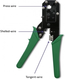 Ergonomski, protizdrsni ročaji zmanjšujejo utrujenost roke, zaskočni mehanizem pa zagotovi dosleden pritisk do popolnega stiska. Idealna izbira za montažo in servis RJ45 (8P8C), RJ12/RJ11 v domačih in profesionalnih omrežjih.