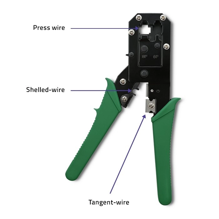 Čisto in trdno stiskanje modularnih konektorjev 8P8C (RJ45) ter 6P6C/6P4C (RJ12/RJ11). Več velikosti matric za različne tipe vtičev ter zanesljiv zaključek omrežnih kablov.