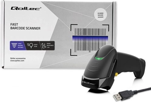Univerzalni čitalnik črtnih kod Qoltec obvlada hitro in natančno zajemanje kod 1D in 2D v trgovinah, skladiščih, lekarnah, knjižnicah ali pisarnah. Dovolj je usmeriti v kodo in pritisniti sprožilec – takojšnja zvočna potrditev zagotovi pravilno odčitavanje. Ergonomski ročaj in nizka teža prinašata udobje tudi pri celodnevnem delu.