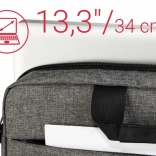 Elegantna in lahka torba za prenosnik z diagonalo 13,3″, ki zagotavlja zanesljivo zaščito pred praskami in umazanijo. Ponuja oblazinjeno notranjost, organizer v sprednjem žepu in hidrofoben material, ki ščiti pred dežjem. Za udobno nošenje ima nastavljiv ramenski trak, trak za pritrditev na kovček ter predal za tablico do 11″.