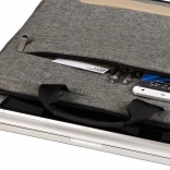 Posebna površina odbija vodo in ščiti prenosnik ter dokumente pred vlago, zato ostanejo varni tudi v neugodnem vremenu.