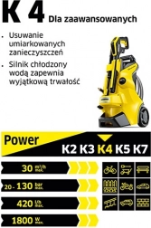 Kärcher K4 Classic Home je visokotlačni čistilnik namenjen vsakodnevni uporabi. Zaradi svoje kompaktne zasnove z držalom za cev in kolesci je enostavno prenosljiv in izjemno učinkovit pri čiščenju različnih površin.