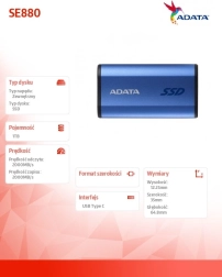 ADATA SE880 je izjemno kompakten zunanji SSD, zasnovan za maksimalno mobilnost in zmogljivost. Zahvaljujoč vmesniku USB 3.2 Gen 2x2 (20 Gb/s) dosega hitrosti branja in pisanja do 2000 MB/s, zato lahko udobno delate neposredno z diska – od montaže videa do upravljanja velikih knjižnic datotek.