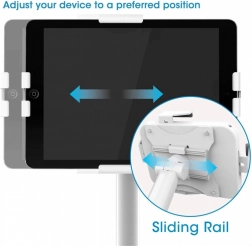 Prosto stoječe talno stojalo z nastavljivo višino za tablice od 7,9" do 11", 360° vrtenje, nagib +20° do -110°, belo