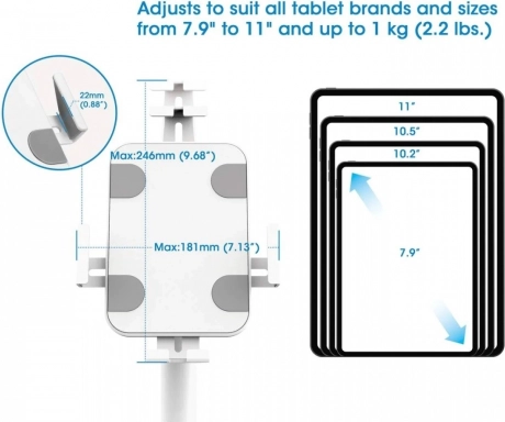 Varno kiosko stojalo z zaščito proti kraji, prilagojeno tablicam vseh znamk in velikosti od 7,9 do 11 palcev in mase do 1 kg