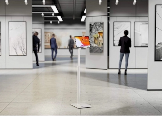 Zaščitite svojo dragoceno tablico pred krajo in nepooblaščenim ravnanjem, zlasti kadar jo morate pustiti brez nadzora. Stojalo privijte v tla – vsi potrebni montažni elementi so priloženi. V paketu je tudi ključ, s katerim lahko zaklenete sponke in tako zaščitite tablico pred krajo.