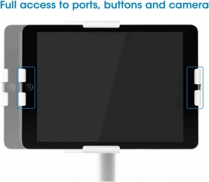 Nastavljive prijemalne sponke se prilagodijo tablicam katerekoli znamke z diagonalo 7,9 do 11 palcev ter omogočajo dostop do priključkov, gumbov in sprednje/zadnje kamere. Mehka zadnja stran in priložene penaste blazinice preprečujejo praskanje naprave.