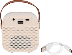 Lahek zvočnik z rjavim usnjenim trakom omogoča enostaven transport in je idealen za uporabo doma in na poti.