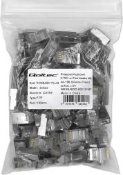 Prehodni konektorji RJ45 ponujajo znatno boljši in natančnejši oprijem kot standardni konektorji in zagotavljajo večjo zanesljivost povezave v telekomunikacijskih in računalniških omrežjih. Dovolj je, da skozi konektor potegnete vseh osem žic, kar olajša preverjanje enakomernosti in pravilnega zaporedja žic pred krimpanjem. Popolna rešitev za profesionalce, ki cenijo učinkovitost, natančnost in vzdržljivost svojih instalacij. Priporočamo uporabo namensko zasnovanega orodja za stiskanje.