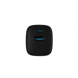 Natec Ribera GaN omogoča hkratno polnjenje dveh naprav prek dveh priključkov (USB-A in USB-C) s skupno močjo 30 W.