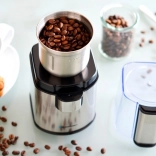 Odstranljiva mlevna komora iz nerjavečega jekla močno olajša izsip mlete kave in vzdrževanje. Eleganten, moderen dizajn se odlično poda v vsako kuhinjo, naprava pa navduši tudi z vsestranskostjo – zmelje tudi začimbe, semena in oreščke.