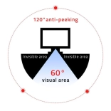 Napredne mikro žaluzije omogočajo jasno sliko le uporabniku pred monitorjem; že pri rahlem stranskem pogledu je vsebina zamegljena, pri približno 30° pa izrazito potemnjena. Filter dodatno zmanjšuje škodljivo modro svetlobo in ima antirefleksni sloj za udobno delo brez utrujenosti oči tudi v svetlih prostorih.
