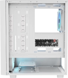 MODECOM Breeze ARGB Flow Midi daje poudarek na optimalnem pretoku zraka in udobni montaži. Trije 140 mm ARGB ventilatorji na čelu vsesavajo hladen zrak, zadnji 140 mm ventilator pa ga odvaja – rezultat so nizke temperature in stabilno delovanje tudi pri zahtevnem igranju in večopravilnosti. Stranica iz kaljenega stekla je pritrjena na praktične klik mehanizme, zato do komponent hitro dostopate brez vijakov.