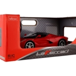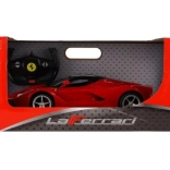 Podrobna replika FERRARI LaFerrari v rdeči barvi s črnimi poudarki navduši s precizno izdelavo in odpirajočimi se vrati, ki poudarijo realističen videz modela.