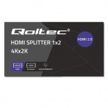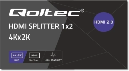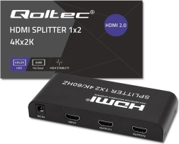 Aktivni HDMI razdelilnik QOLTEC zanesljivo razdeli en HDMI signal na dva izhoda, tako da lahko filme, igre ali predstavitve hkrati prikazujete na dveh zaslonih. Naprava ponuja največjo ločljivost 4K/2K pri 60 Hz, kar zagotavlja ostro sliko in tekoče gibanje.
