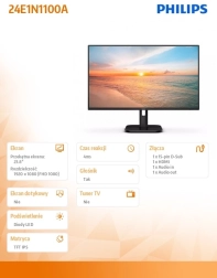 Monitor Philips je zasnovan tako, da izpolnjuje zahteve zahtevnih uporabnikov pri delu in v prostem času. Ker je opremljen s tehnologijo IPS, nudi široke vidne kote in žive barve brez popačenja. Z osveževalno frekvenco 100Hz zagotavlja gladko sliko, kar je idealno za gledanje filmov ali igranje iger.