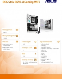 ROG STRIX B650-A Gaming WiFi združuje čist dizajn z zanesljivo napajalno kaskado in masivnimi hladilniki, ki držijo temperature pod nadzorom tudi pri dolgotrajni obremenitvi. Zahvaljujoč platformi AM5 dobite podporo za najnovejše procesorje AMD ter možnost uporabe hitrega delovnega pomnilnika DDR5 za največjo prepustnost.