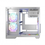 Bela računalniška omarica Volcano Panorama APEX ARGB 3F MIDI je idealna izbira za vse, ki želijo optimizirati hlajenje in hkrati pokazati svoje komponente v vsej lepoti. Steklene plošče in ARGB ventilatorji dajejo sodoben videz, medtem ko možnost montaže plošč z obrnjenimi konektorji zagotavlja fleksibilnost za napredne konfiguracije.