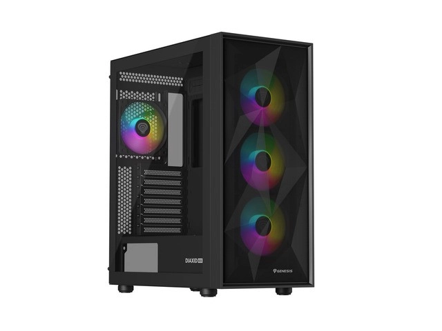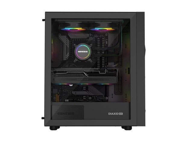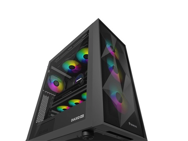 Slogovno in vzdržljivo PC ohišje za zahtevne sestave: GENESIS Diaxid 605 ARGB ponuja odlično hlajenje, do 4 prednameščene ARGB ventilatorje, podporo AIO do 420 mm, USB‑C na zgornji plošči ter popolno zaščito pred prahom z magnetnimi filtri in finim mesh sprednjim delom.