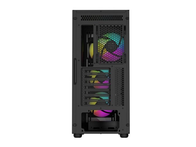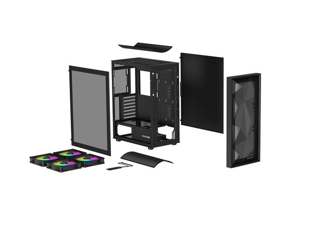Trije sprednji intake in en zadnji exhaust zagotavljajo pozitiven tlak in odlične temperature tudi pri obremenitvi. ARGB osvetlitev je mogoče sinhronizirati prek osnovne plošče.