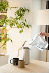 Skupna prostornina 3,5 l (pribl. 2,4 l skupne kapacitete vrča in 1,4 l filtrirane vode na eno polnjenje) pokrije celodnevno hidracijo ter pripravo pijač in jedi.
