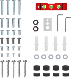 Del paketa je celoten montažni komplet, ki vključuje vse potrebne vijake in vložke, kar omogoča hitro in natančno namestitev.