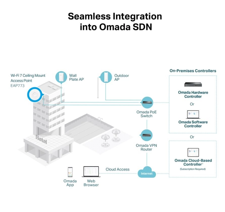 Naprava podpira centralizirano upravljanje, mesh omrežje in napredne možnosti uvedbe, zato zlahka razširite pokritost in ohranite enotno upravljanje celotne infrastrukture. Odlična izbira za pisarne, šole, hotele in trgovine.