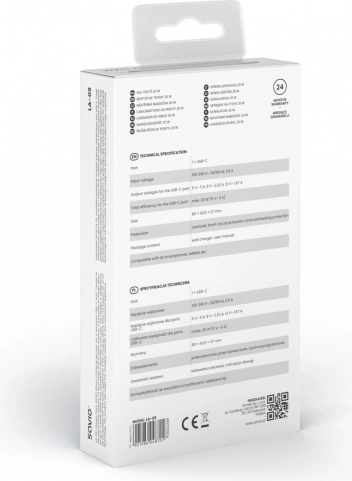 Savio LA-09 je adapter, zasnovan za hitro polnjenje pametnih telefonov, tablic in drugih naprav. Njegova univerzalna združljivost z USB-C zagotavlja brezhibno uporabo z različnimi znamkami in modeli. Zahvaljujoč naprednim zaščitnim sistemom proti preobremenitvi, prenapetosti in pregrevanju je polnjenje vaših naprav maksimalno varno.