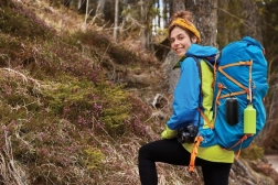 Kompaktna oblika in tekstilna zanka olajšata prenašanje in pritrditev na nahrbtnik ali kolo.