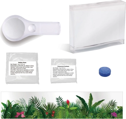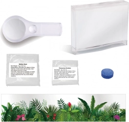 Paket vsebuje vse potrebno za začetek vašega avanturističnega potovanja: akvarij, prehranski gel, povečevalno steklo, nalepko z rastlinami in navodila. Priporočeno za otroke od 8 let.