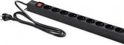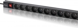Izbira prave PDU letve naj vključuje vidik funkcionalnosti, kakovosti materialov in ponujenih funkcij, kot je osvetljeno stikalo za enostavno lociranje napajanja. Ta letev je idealna za 19" rack omare, nudi 16 vtičnic tipa FRENCH in ima konstrukcijo iz visokokakovostnega aluminija v črni barvi, medtem ko so vtičnice iz odporne ABS plastike. Takšna zasnova zagotavlja odpornost proti mehanskim poškodbam in intenzivni uporabi. Posebni nosilci na obeh straneh omogočajo enostavno montažo. Vtičnice so razporejene pod kotom 35 stopinj, kar olajša upravljanje kablov in optimizira izrabo prostora v strežniški omari.