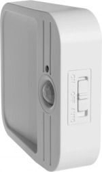 Vgrajeni PIR senzor zaznava prostor pod kotom 100° na razdalji do 3 m. V načinu AUTO se prižge le ob zaznavi gibanja v temi, kar varčuje z baterijami. Magnetni nosilec omogoča hitro snemanje in uporabo svetilke drugje – brez orodja in kablov.