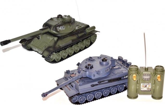 Poglavi se v vojno bitko! Upravljaj tank in poišči svojega sovražnika! Vozi po zahtevnem terenu! Preseneti nasprotnika in ga sestrelí! Kdor prejme štiri zadetke, izgubi! Prava zabava za fante in moške. Vsak tank deluje na drugačni frekvenci – 27 in 40 MHz vrtljivi stolp zvočni in svetlobni učinki napajanje: baterijski paket 4,8 V – polnjenje iz omrežja Velikost: 25 cm (brez cevi) Priporočena starost: od 6 let