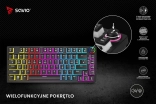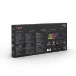 Tipkovnica se ponaša s kompaktno zasnovo z zmanjšanim številom tipk in RGB osvetlitvijo, ki povečuje njeno vizualno privlačnost.