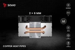 Hladilnik procesorja Savio Frost X2 je namenjen učinkovitemu hlajenju sodobnih procesorjev z največjim TDP 125 W. Zahvaljujoč dvema bakrenima toplotnima cevema (heatpipe) in kakovostnemu ventilatorju ohranja optimalno temperaturo CPU tudi pri visoki obremenitvi.