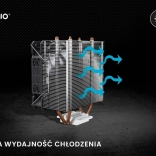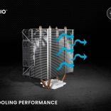 Hladilnik Savio Frost X2 nudi odlično hlajenje zahvaljujoč dvema 6 mm bakrenima toplotnima cevema, ki sta v neposrednem stiku s procesorjem in hitro prenašata toploto v aluminijast hladilnik. Za zmogljivost hladilnega sistema skrbi 120 mm ventilator z nastavljivimi vrtljaji od 800 do 1800 RPM, priključen prek 4-pin konektorja s podporo PWM. Ta tehnologija samodejno prilagaja hitrost ventilatorja glede na temperaturo, kar zagotavlja tih način delovanja in energijsko učinkovitost.