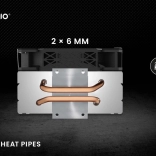 Dve 6 mm bakreni toplotni cevi zagotavljata hiter prenos toplote od procesorja do hladilnega rebra.