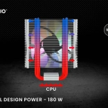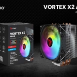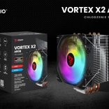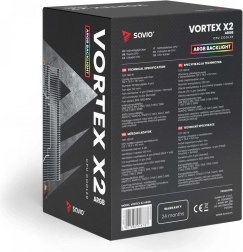 Hladilnik za procesor Savio Vortex X2 ARGB je idealna izbira za vse, ki iščejo učinkovito in slogovno dovršeno rešitev hlajenja za svoj računalnik. S štirimi bakrenimi toplotnimi cevmi premera 6 mm in 120‑mm ventilatorjem zlahka hladi procesorje s TDP do 180 W.