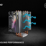 Vrhunsko zasnovan sistem z bakrenimi toplotnimi cevmi in zmogljivim ventilatorjem zagotavlja stabilne temperature CPU tudi pri največji zmogljivosti.