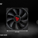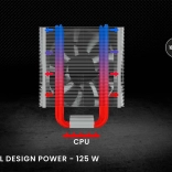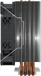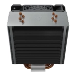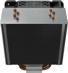 Opremljen je s štirimi bakrenimi toplotnimi cevmi, ki prenašajo toploto iz procesorja na aluminijasti hladilnik. 120 mm ventilator s PWM uravnavanjem hitrosti (800–1800 RPM) zagotavlja optimalen pretok zraka in hkrati minimalno hrupnost, kar je idealno za tiho okolje.