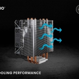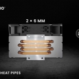 Hladilnik Savio Vortex X2 ima štiri bakrene toplotne cevi (heatpipe), ki učinkovito odvajajo toploto s površine procesorja na aluminijasti hladilnik.