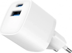 Ta univerzalni omrežni polnilnik združuje porta USB‑C in USB‑A, zato lahko udobno napolnite širok nabor naprav – od pametnih telefonov in brezžičnih slušalk do powerbankov. Moč 20 W zagotavlja hitro dopolnjevanje energije, tehnologiji USB Power Delivery in QC 3.0 pa poskrbita za združljivost s hitrim polnjenjem številnih znamk.