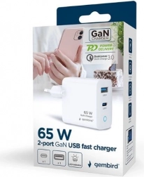 Tehnologija GaN zmanjša dimenzije in poveča učinkovitost. LED indikator jasno signalizira stanje napajanja.