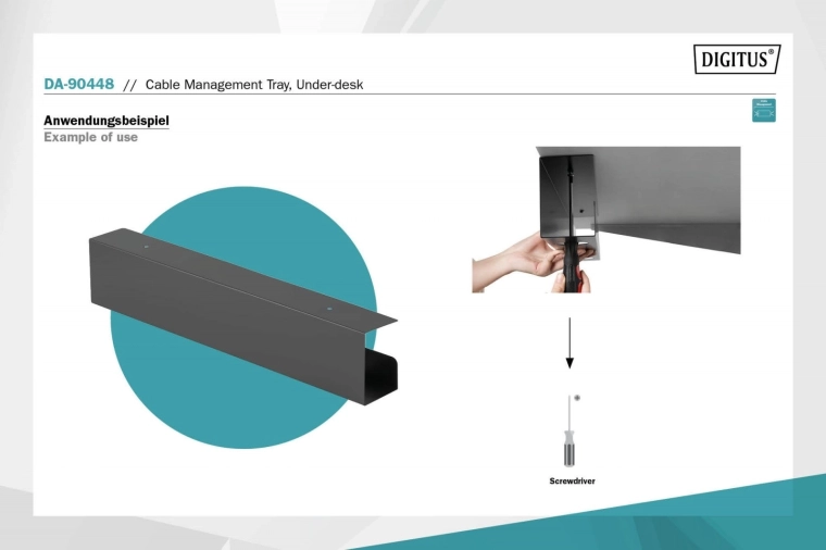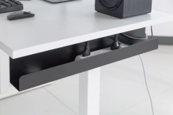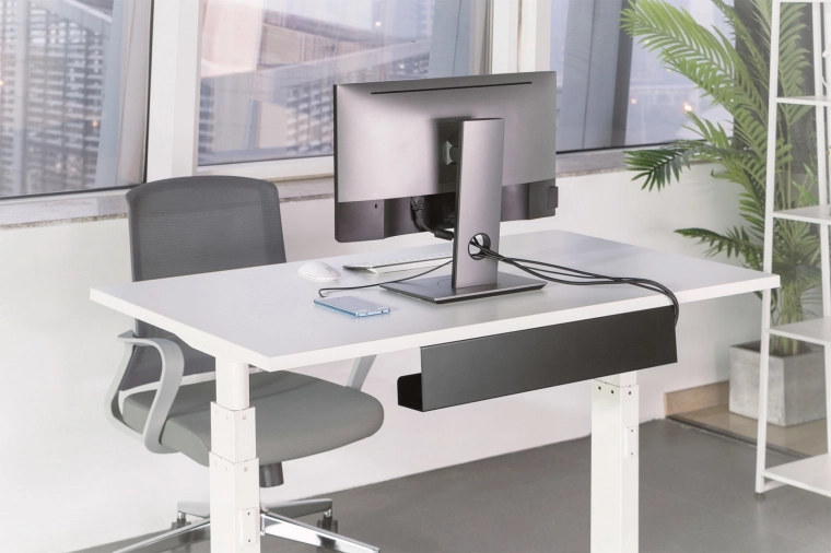 Idealni dodatek k dvižnim/višinsko nastavljivim mizam: kanal vodi kable tako, da se pri dviganju in spuščanju plošče ne zapletajo in ne poškodujejo. Montaža je preprosta – pritrditev z vijaki pod ploščo zagotovi stabilnost in dolgo življenjsko dobo.
