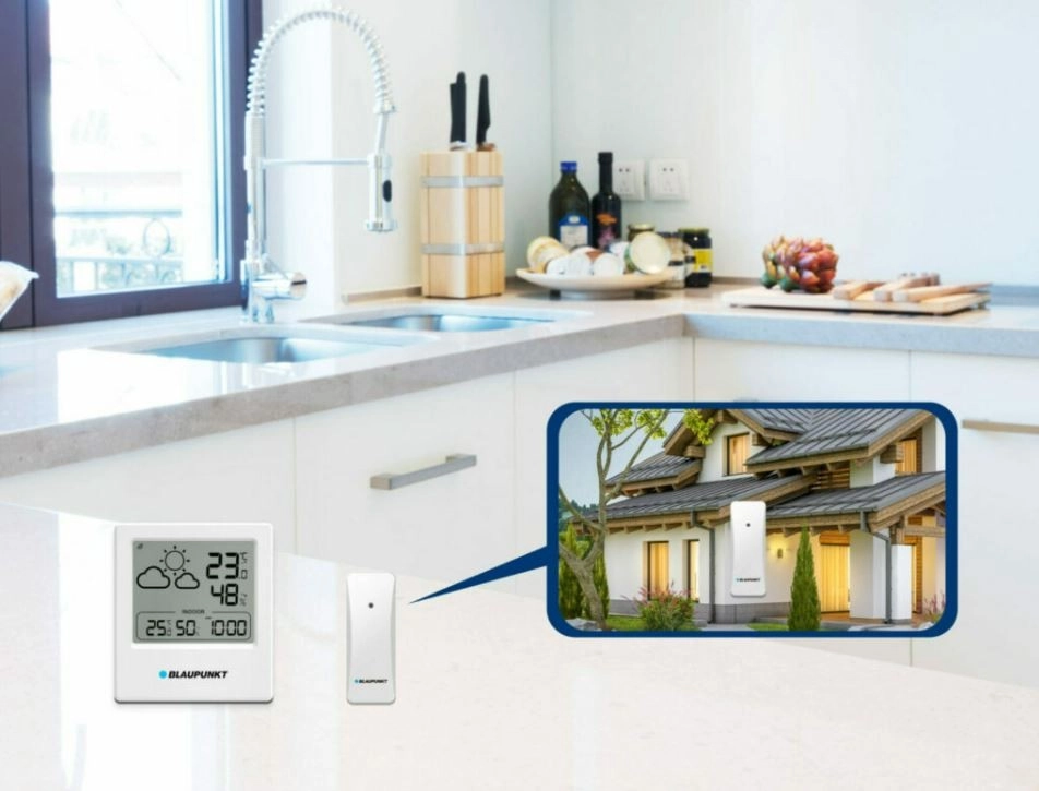 Postajo lahko postavite ali obesite zahvaljujoč odprtini za kavelj na zadnji strani. Napajanje z baterijami (v paketu za postajo in tipalo) omogoča enostavno namestitev kjerkoli brez kablov. Zunanje tipalo namestite v senco, zaščiteno pred dežjem in vetrom, za čim bolj natančne meritve. Integriran 12/24-urni časovni način dopolnjuje nabor funkcij.