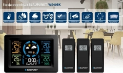 Pametna meteorološka postaja BLAUPUNKT WS40BK z barvnim LCD zaslonom in do štirimi sočasnimi meritvami (1 vgrajen senzor + 3 brezžična tipala) zagotavlja, da imate temperaturo, vlažnost, zračni tlak, trend vremena in lunine mene vedno na očeh. Ponuja natančne senzorje, zgodovino min/max, 12/24-urne ure s koledarjem, budilko s funkcijo dremeža in zatemnljivo osvetlitev. Napajanje je možno iz omrežja ali iz baterij.