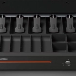 5 predalčkov za bankovce, 4 fiksni in 6 odstranljivih predalčkov za kovance ter sprednji vhod za medije. Združljivo z več kot 20 valutami.